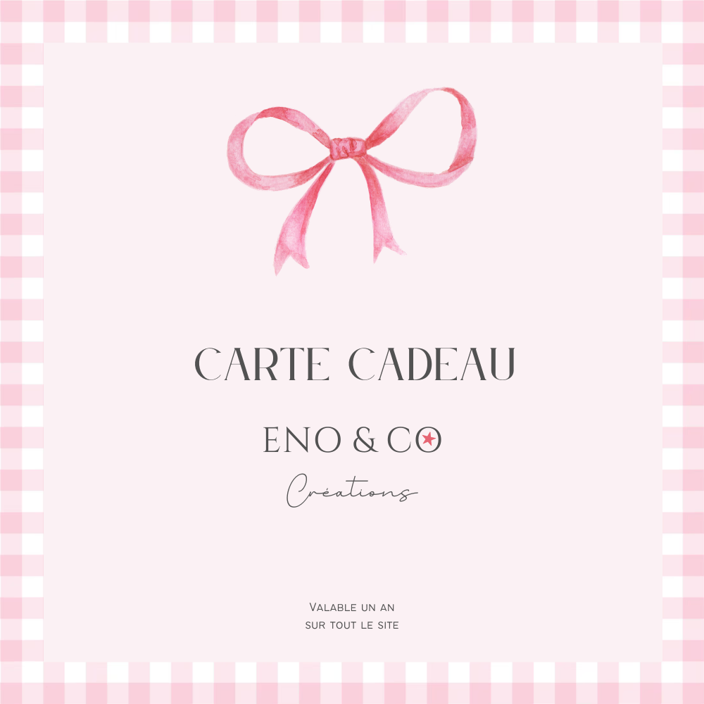 Découvrez la magie de donner avec la Carte Cadeau Eno & Co ! Que ce soit pour une naissance, un anniversaire ou simplement pour exprimer votre affection, notre carte cadeau est le choix idéal.