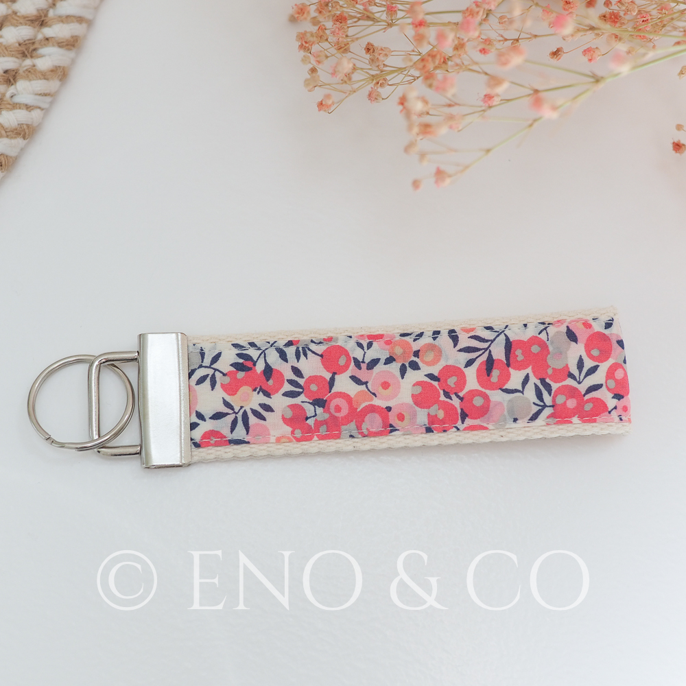 Le porte clés est réalisé avec une sangle en coton de haute qualité et un tissu Liberty élégant. Ainsi Il devient un accessoire unique à la fois pratique mais aussi très chic.