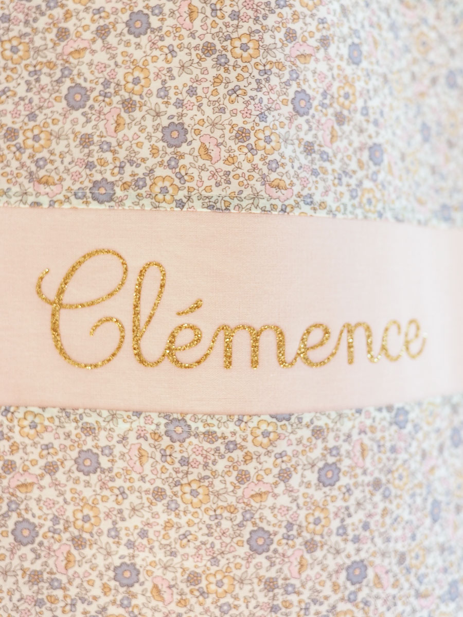 Personnalisation réalisée en flex thermocollant pailleté or résistant aux lavages sans substances nocives
